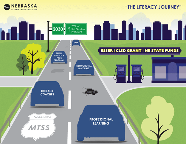 To foster a culture of proficient and lifelong readers in Nebraska and unlock student potential for learning, earning, and living through a focus on evidence-based reading instruction.